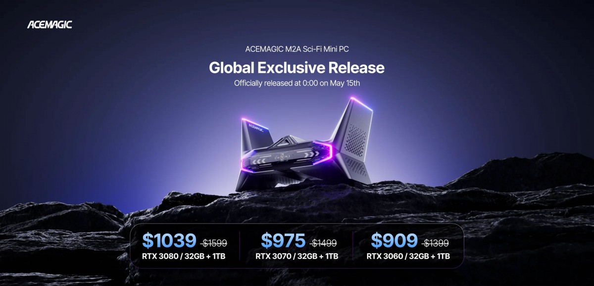 Doucement, la campagne de marketing d’ACEMAGIC autour du PC M2A touche à sa fin, et pour cause : les tarifs sont désormais connus, et les précommandes seront ouvertes le 15 mai à minuit ; bien qu’aucun fuseau horaire ne soit annoncé.