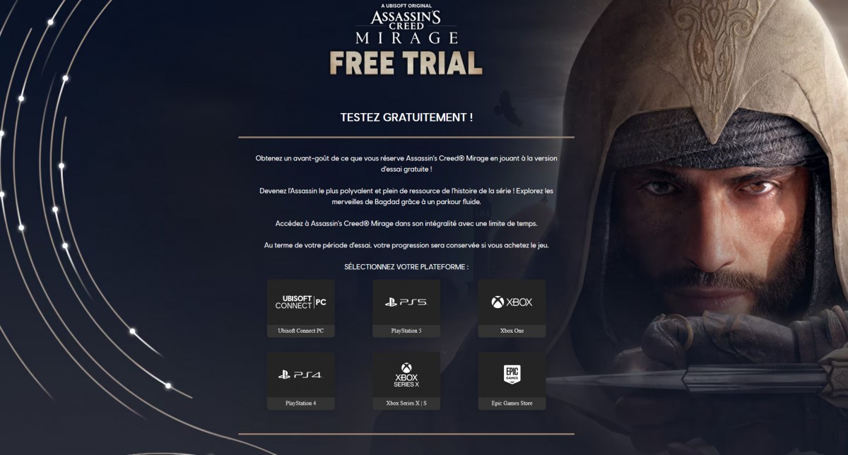 Ubisoft nous propose d’essayer gratuitement son jeu Assassin’s Creed Mirage jusqu’au 30 avril !
