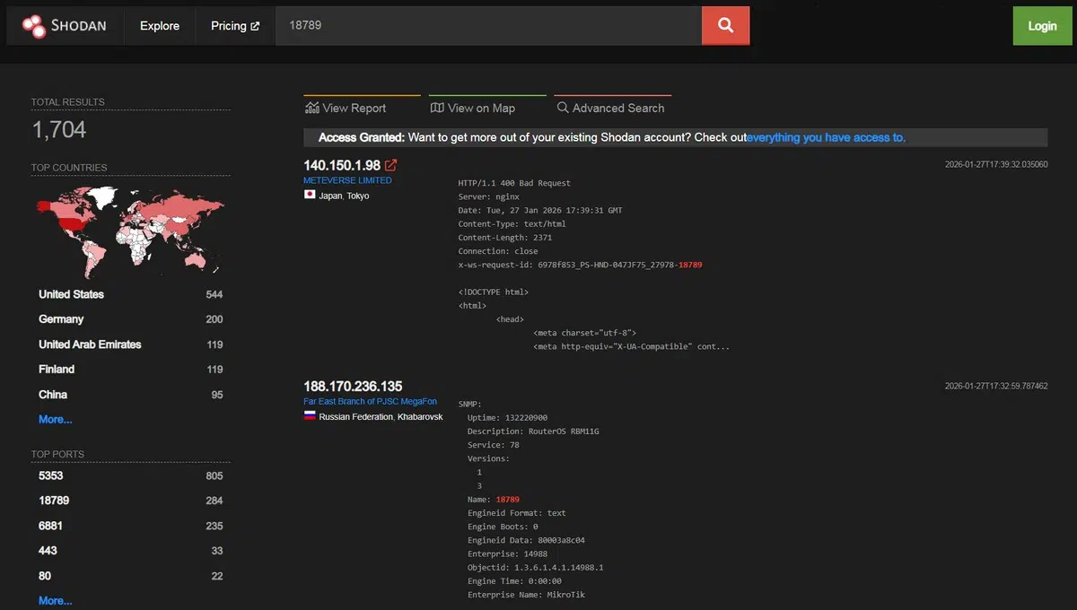 D’ailleurs, Luis Catacora, employé chez Cloudflare, ne cache pas son inquiétude après avoir réalisé une analyse sur Shodan. Plus les heures passent, plus il y a de passerelles Moltbot exposées sur Internet sur le port 18789 (utilisé par défaut). Ce rapide scan basé uniquement sur le numéro de port met en avant cette tendance : les utilisateurs sont de plus en plus nombreux à exposer sur le Web des instances Moltbot. Soit plus de 1 600 instances à l’heure actuelle.