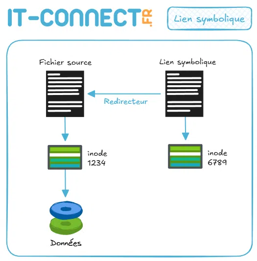 Le lien symbolique est ce qui se rapproche le plus du raccourci que vous connaissez sous Windows. Contrairement au lien physique, le lien symbolique est un fichier à part entière (comprenez : il a son propre inode) qui contient un chemin pointant vers le fichier cible. Autrement dit, le lien symbolique est un redirecteur vers un fichier, qui agit comme un panneau précisant : “Le fichier que vous cherchez se trouve là-bas“.
