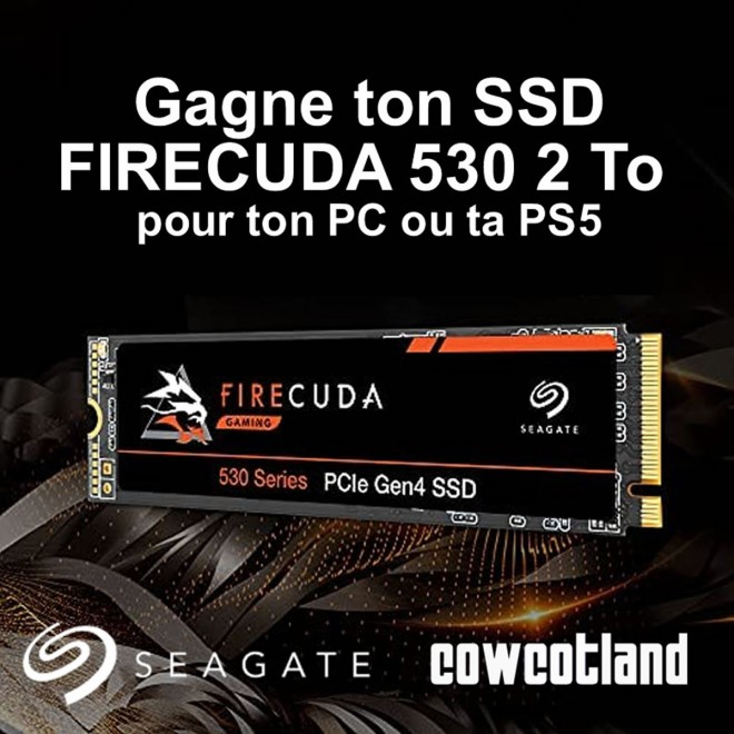 Durant trois jours, et cela grâce à SEAGATE, vous pourrez tenter votre chance pour gagner un SSD FIRECUDA 530 2 To qui sera compatible avec votre PC, mais aussi votre PS5.