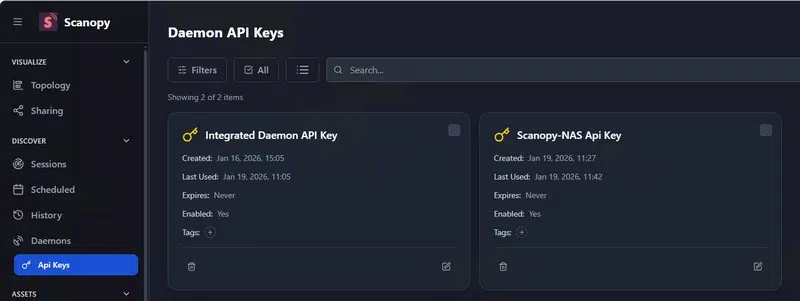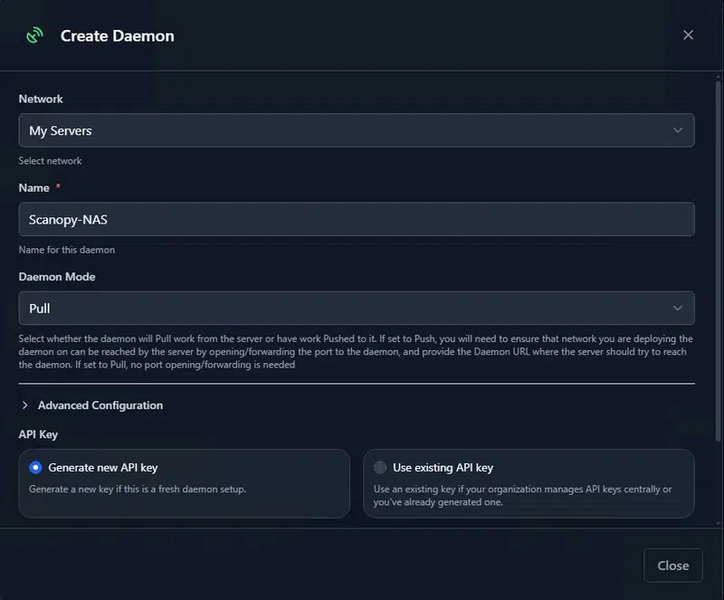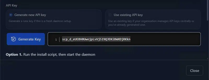 La clé d’API sera utilisée par le nouveau daemon Scanopy pour s’authentifier auprès du serveur.