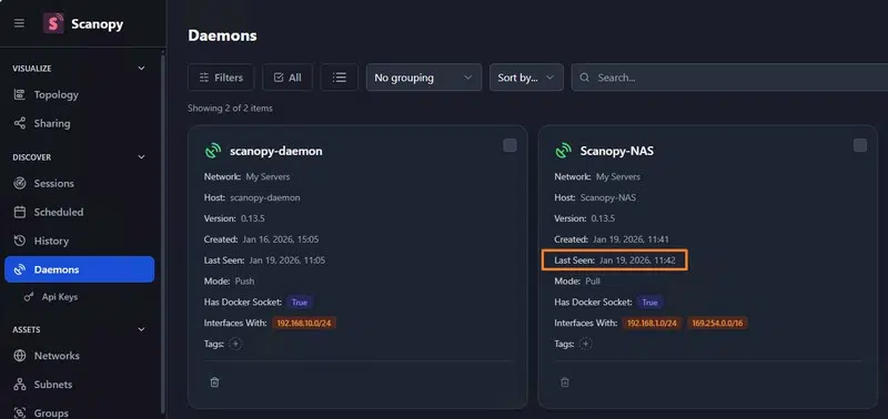 Ce second daemon Scanopy a été déployé sur un NAS Synology via Container Manager (Docker).