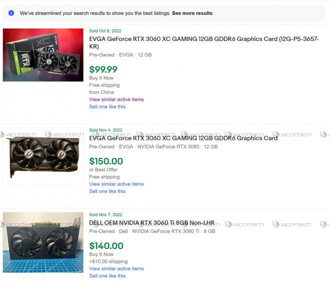 Le marché des cartes graphiques d’occasion était particulièrement intéressant dans certaines contrées, notamment dans les pays ou beaucoup de cartes graphiques étaient exploitées pour du mining. Ainsi, on pouvait trouver au mois d’octobre, des RTX 3060 pour 99 dollars ou encore des RTX 3080 Ti pour 369 dollars. Oui, on peut le dire, des tarifs qui sont complètement OUF, même pour des cartes qui ont miné…