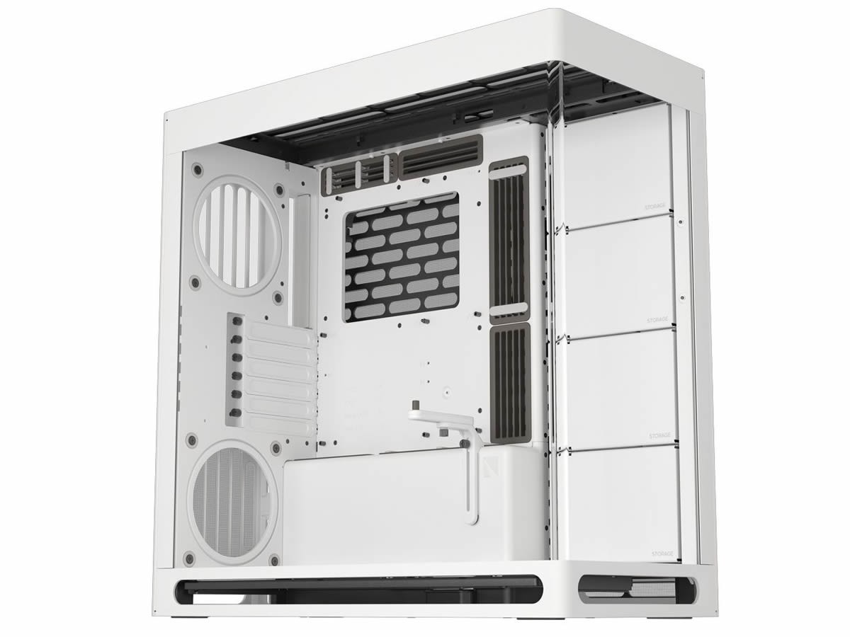 En effet, le boitier peut recevoir pas moins de trois ventilateurs de 120 mm ou 140 mm dans le bas, le haut et le long de la carte mère, plus deux autres à l’arrière. Onze ventilateurs au maximum donc, mais des options plus limitées en watercooling pour le modèle VGPU qui ne pourra pas avoir de radiateur sur le support du bas.