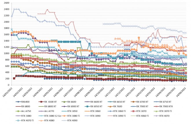 Les prix des cartes graphiques AMD, Intel et NVIDIA semaine 24-2023 : Les anciennes Gen des verts à la baisse