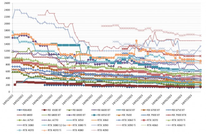 Chez AMD nous avons la RX 6600 qui perd 2 euros et la RX 6750 XT qui revient à son prix d’il y a 15 jours, donc 379.90 euros contre 419.90 euros la semaine dernière. Pour le reste, rien ne bouge…