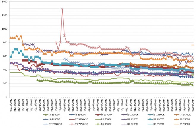 On continue chez AMD avec le 5800X3D qui baisse de 17 euros, le 7700X qui fait – 16 euros, le 7900X qui augmente de 3 petits euros, le 7950X qui baisse de 3 petits euros, lol, et enfin, le 7950X3D qui est au moins cher, chez 1FODISCOUNT, au tarif de 576.90 euros. […]