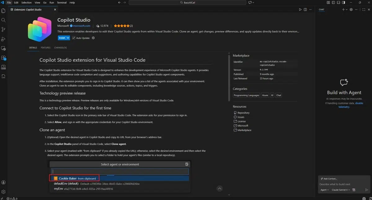 L’extension Copilot Studio est dès à présent disponible via la marketplace de Visual Studio.
