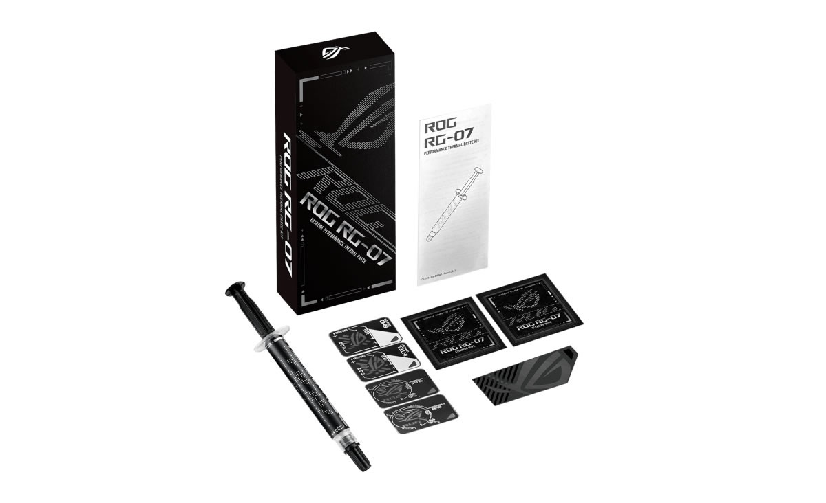 Doucement, ASUS ajoute de petits accessoires indispensables à son catalogue : prochainement, nous aurons le droit à de la pâte thermique badgée ROG, signe de grosses performances. Malheureusement, la fiche technique de cette RG-07 est pour l’instant bien maigre et aucun détail n’est donné à propos de la conductivité thermique ou de la viscosité, par exemple.