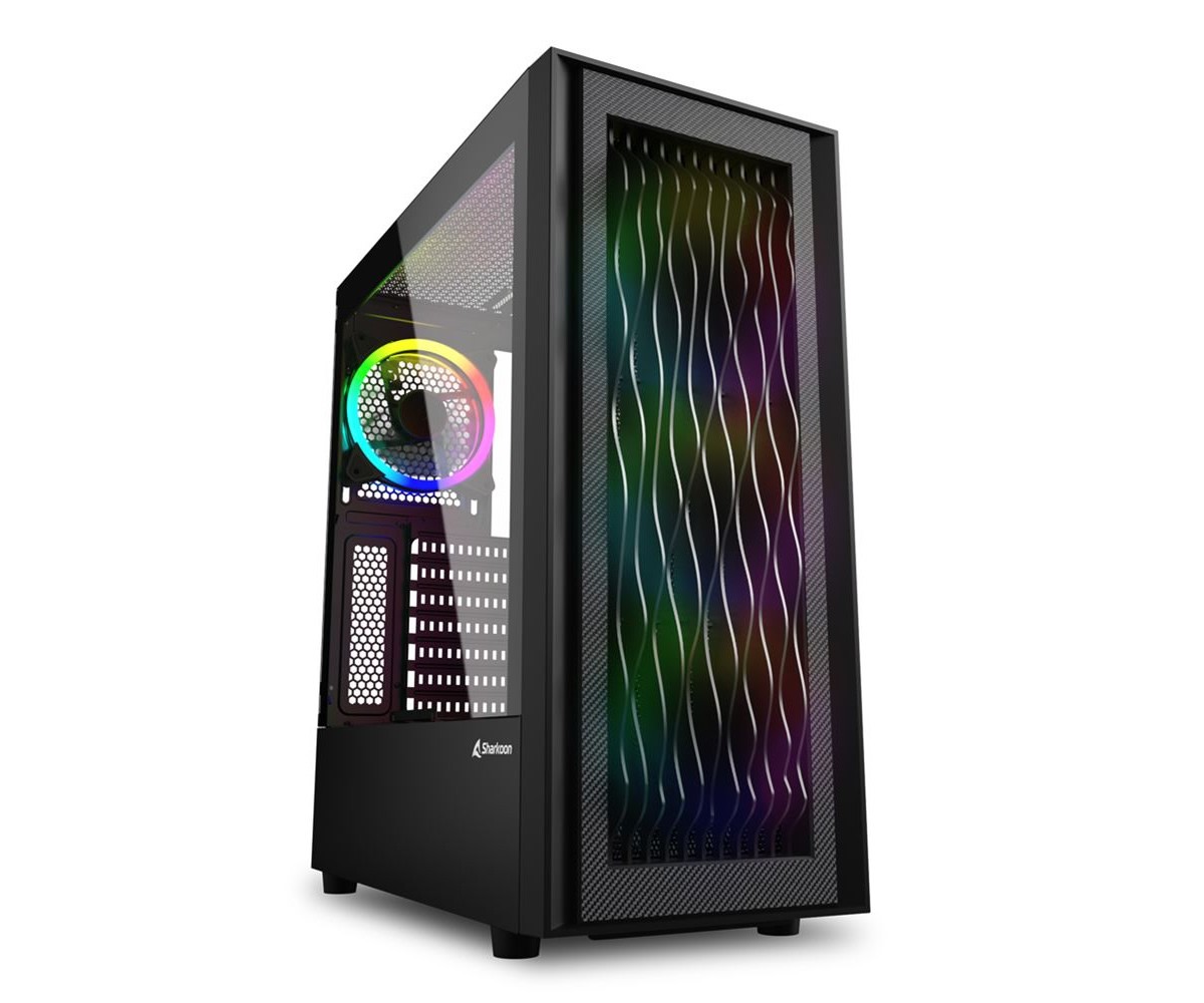Nouveauté entrée de gamme pour Sharkoon avec le boitier RGB Wave, mais… Quel design sympathique ! Car si de face le boitier est relativement classique avec une façade en mesh parcourue par des barres verticales en plastique, celles-ci montrent leurs formes une fois le boitier légèrement de côté : des vagues, avec un éclairage RGB qui va se refléter dessus.
