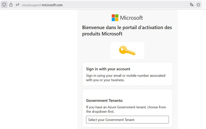 Il y a tout de même une petite subtilité qui peut faire grincer des dents. L’appel téléphonique était anonyme (si ce n’est qu’un numéro peut permettre d’identifier la source), alors que ce portail est inaccessible sans authentification. Autrement dit, vous devez utiliser un compte Microsoft :