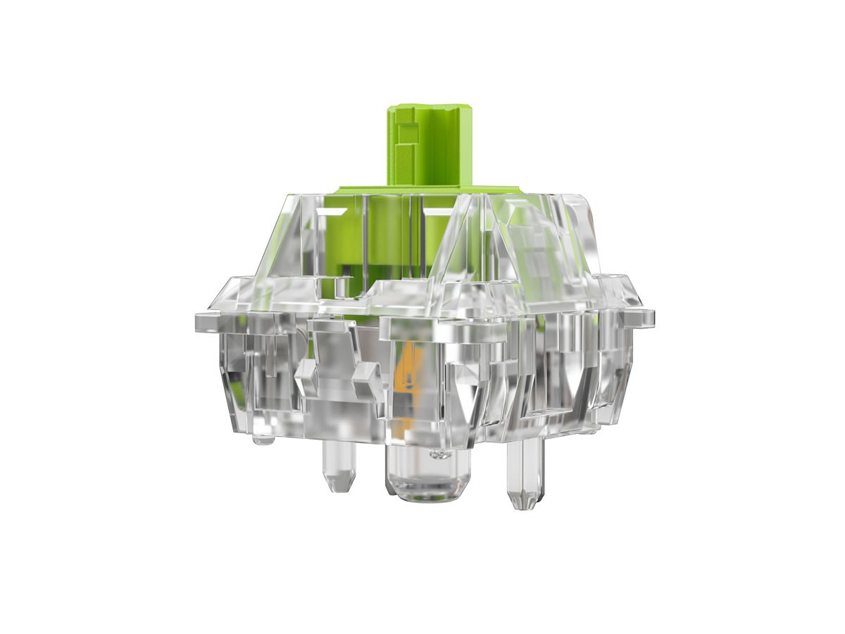 Après les switches tactiles et linéaires, Glorious ajoute du clicky maison à son catalogue avec les Raptor, des interrupteurs en vert et transparence qui sont là pour rappeler qu’on a bien appuyé sur la touche du clavier.