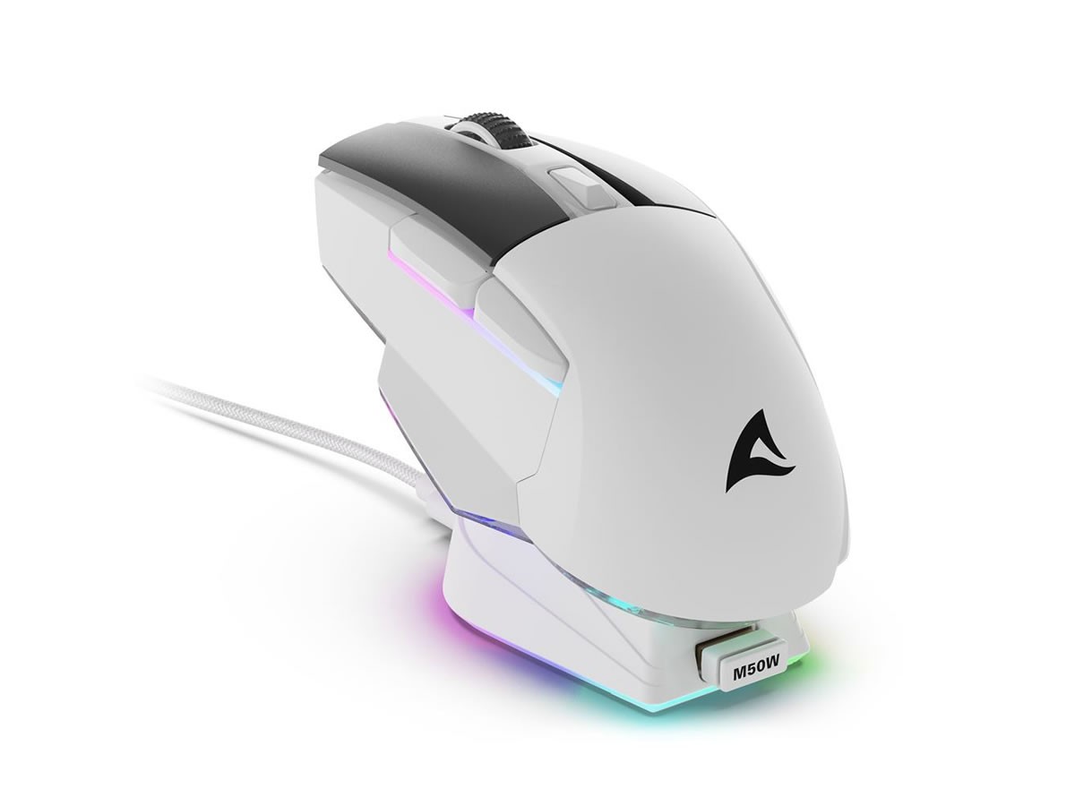 D’ores et déjà disponible pour environ 60 U+20AC, la nouvelle souris SKILLER SGM50W de Sharkoon se montre originale sur le papier, avec des choix originaux et un parti pris assumé. Loin d’être légère, la souris pèse pas moins de 95 grammes et ne vient donc pas jouer dans la même catégorie que les dernières annonces de la concurrence. Mais les choses ne s’arrêtent pas là et on trouve également un socle de charge en bundle, chose désormais très rare pour une souris sans fil, qui plus est abordable.