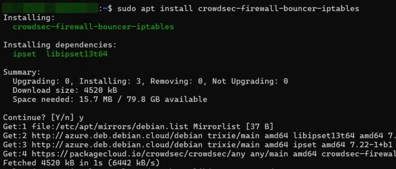 Ensuite, nous lançons l’installation de CrowdSec :