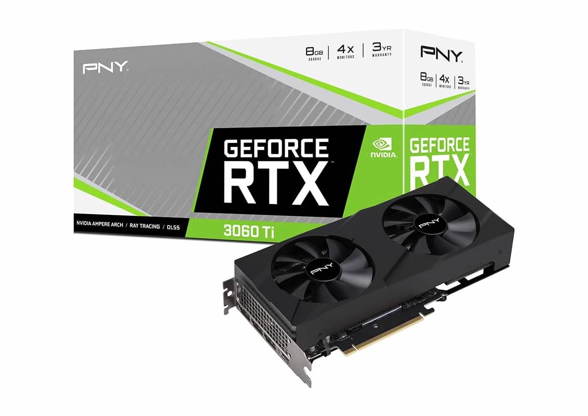 Actuellement, la PNY RTX 3060 Ti Verto Dual Fan profite d’une petite réduction chez Amazon, et ça vaut le détour. Pourquoi ? Tout simplement parce que les 8 Go de cette carte sont en GDDR6X, ce qui lui permet d’aller un peu plus vite. Et avec son format relativement court et une occupation de deux slots, elle ira dans de nombreux boitiers !