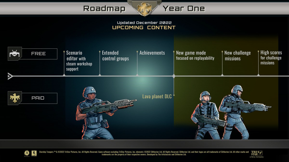 Alors que les jeux de stratégie en temps réel sont un peu moins représentés depuis quelques temps, certains jeux peuvent passer sous les radars, à l’image du très bon Starship Troopers: Terran Command. Sorti il y a quelques mois après une période de beta, le jeu développé par The Artistocrats affiche son avenir avec une roadmap assez chargée pour 2023, que ce soit en contenu payant ou gratuit.
