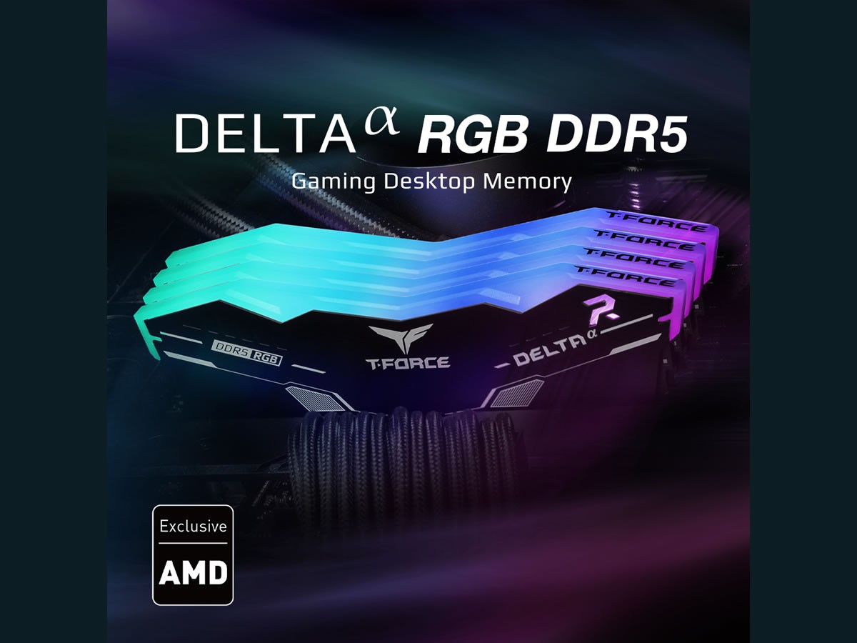Au tour de TEAMGROUP de succomber aux charmes de la technologie AMD EXPO avec de nouveaux kits mémoire en gamme T-FORCE. Sans surprise, c’est le haut de gamme qui se retrouve décliné avec la DELTA RGB DDR5 et son large éclairage RGB adressable et synchronisable sur le haut du radiateur en aluminium. Son nouveau nom ? DELTAet#945; RGB DDR5, avec une fréquence allant de 5200 MT/s à 6000 MT/s pour répondre à un maximum de besoins.
