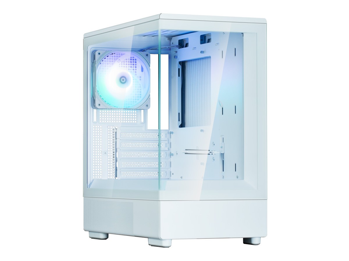 Car si on retrouve bien deux larges panneaux en verre trempé pour profiter d’une vue imprenable sur les composants, le châssis est bien plus proche d’un boitier standard, bien que cinq équerres PCI soient présentes à l’arrière. Plus simple, donc plus abordable ?